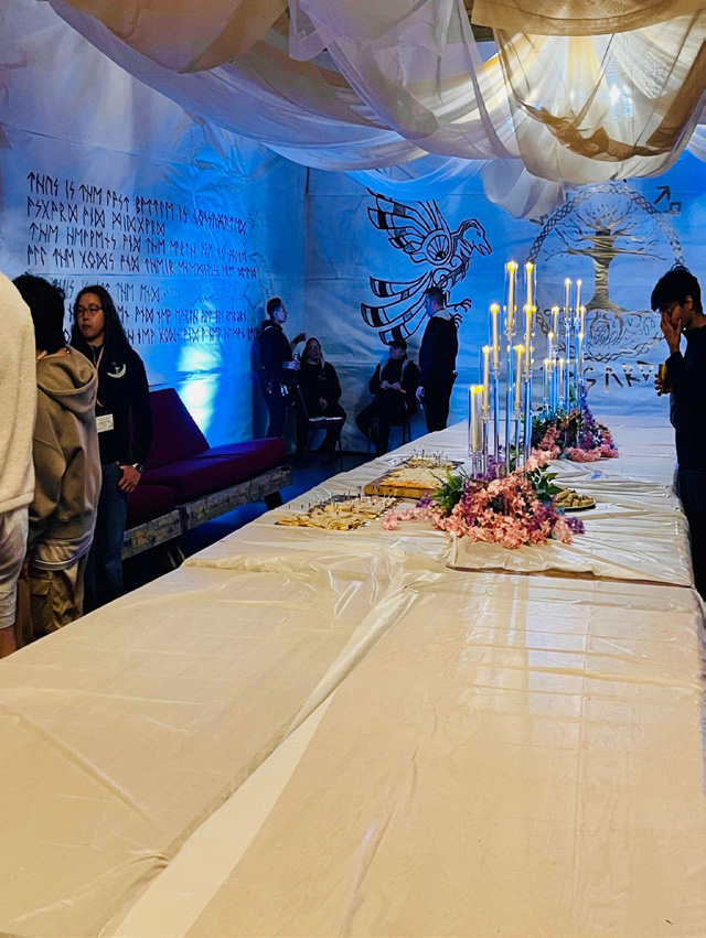 The theme was introduced through a written narrative emailed to the student body, drawing on Norse mythology and framing the event as a journey from Múspellsheimr and Hel to Asgard and Valhalla. Stylized runes and signatures reinforced the visual motif.
