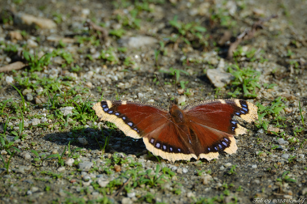 Unlike most butterflies, which live only days to weeks after metamorphosis, mourning cloaks can survive up to 12 months. That longevity makes them feel almost mythological, like Greek gods that refuse to age. Under the California sun, when temperatures rise, they spread their dark wings to absorb heat, and for that reason they are often among the first butterflies to appear in early spring.